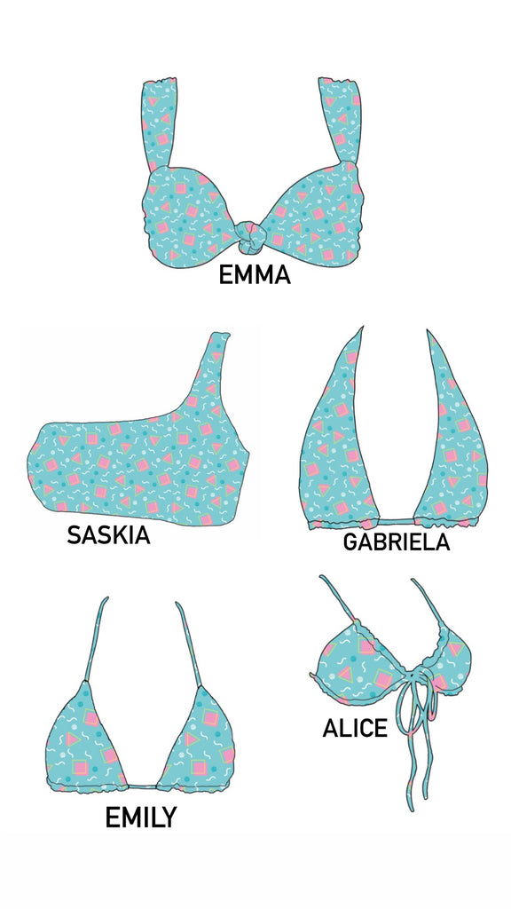 Our '80s Vibes' collection is inspired by some iconic figures and artists from the 1980s. Take a dive in to the eighties with our super cute retro 'kinis!