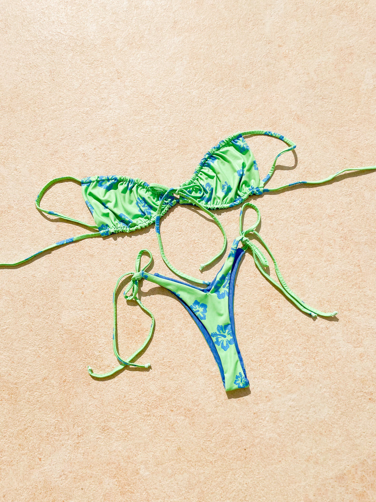The material used is RecoTex fabric which is created from recycled ocean waste such as discarded fish nets and plastic bottles. ♻️ Also, the bikini is reversible which means you can turn your swimsuit inside out - TWO bikinis for the price of ONE!